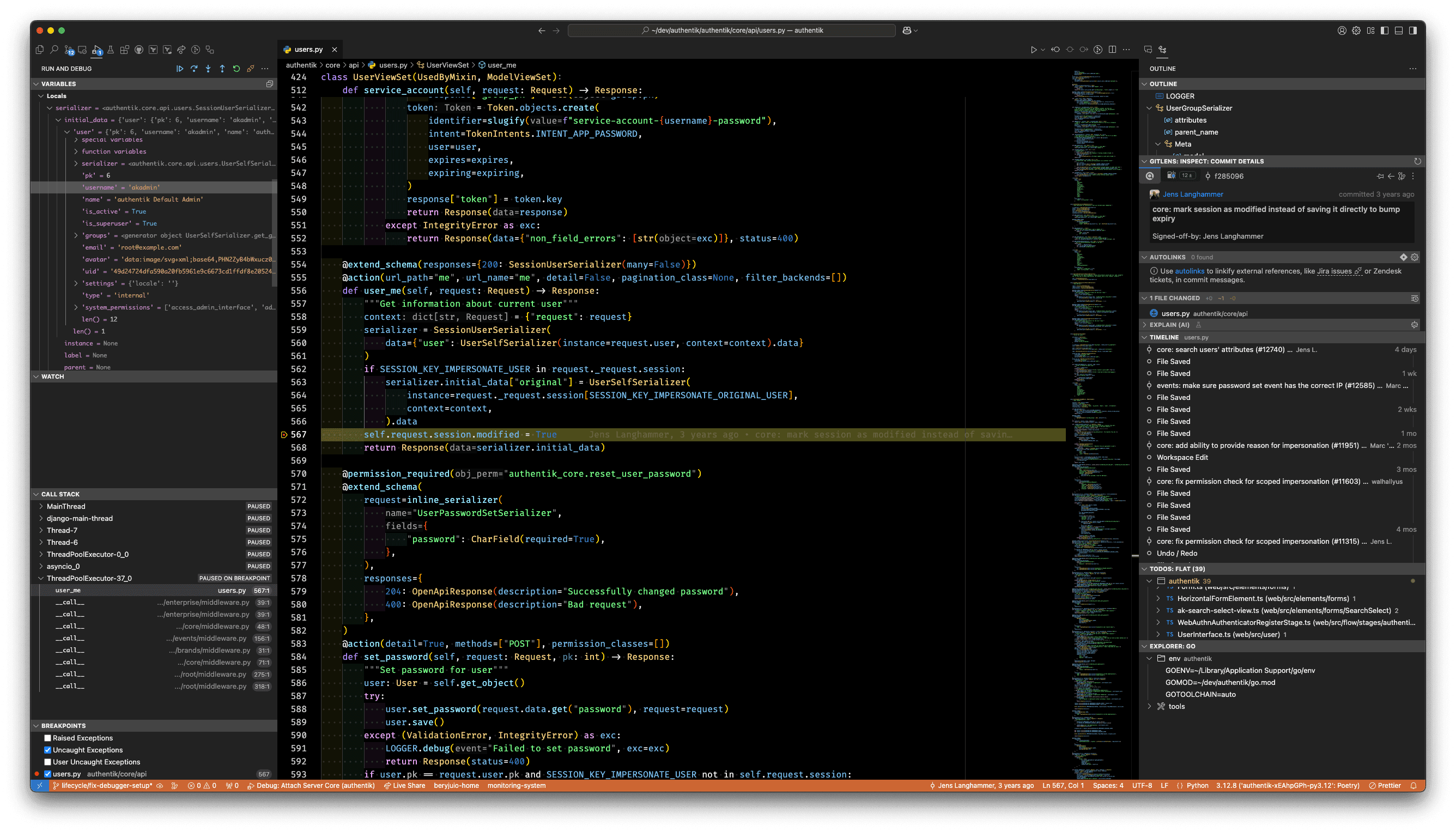 Note that authentik uses debugpy, which relies on the "Debug Adapter Protocol" (DAP). These instructions demonstrate debugging using Visual Studio Code, however they should be adaptable to other editors that support DAP.
